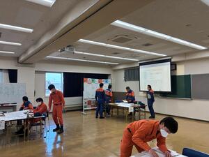 この訓練では、今後発生が危惧される地震等の大規模災害に備え、消防団器具置き場への参集訓練、管轄地域内での情報収集訓練、参集状況や各分団からの情報を取りまとめる図上訓練、災害時における各種活動訓練を実施しました。