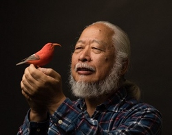 ハワイで独自の進化を遂げた「ハワイミツスイ」を、バードカービングの第一人者である内山春雄氏が巧みな技術で表現します。