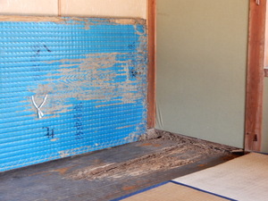 被害が確認された畳と床です