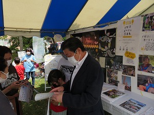 手賀沼親水広場・水の館で開催された「Enjoy手賀沼!2022」を視察しました。新型コロナの感染拡大防止のため、昨年と一昨年は中止となり、3年ぶりの開催となったEnjoy手賀沼は、多くの親子連れでにぎわっていました。星野市長は、感染対策を工夫し開催にご尽力いただいた実行委員会や関係者の方々、感染対策にご協力いただいている来場者の方々に向けて感謝の気持ちをお伝えするとともに、「楽しく遊びながら環境のことについて学ぶことができるEnjoy手賀沼で、ぜひ手賀沼と我孫子の自然を感じてほしい」と挨拶しました。