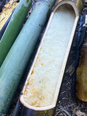 竹筒を使ってお米を炊きます。ほのかな竹の香りがするご飯を食べてみませんか。