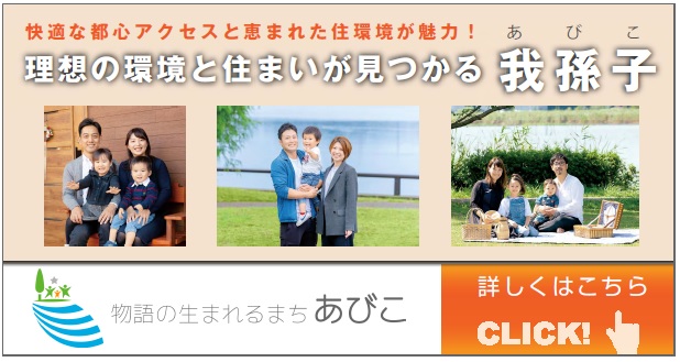 我孫子に移住したファミリーたちを掲載したバナー広告の一例