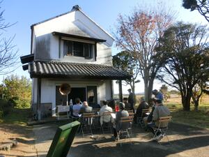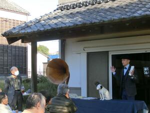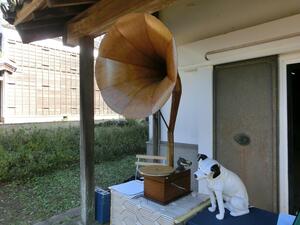 秋晴れの空の下、新土蔵の前でSPレコードを鑑賞しました。