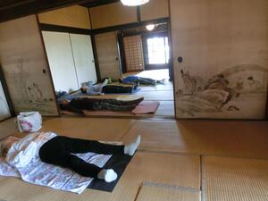 体をあたためるをテーマに母屋室内でヨガを行いました。