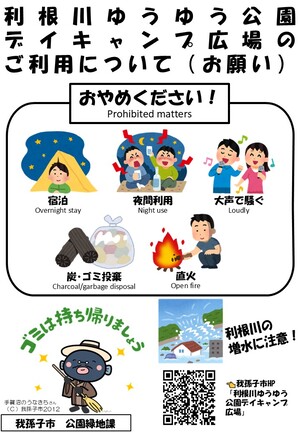 日頃より、利根川ゆうゆう公園をルールやマナーを守ってご利用いただきありがとうございます。