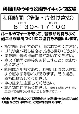 デイキャンプ広場をご利用の皆様へのお願い