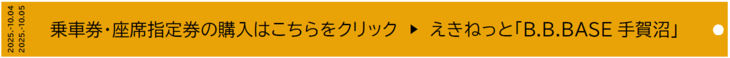 ※指定席券の予約開始日時は、ご利用日の1ヶ月前の10時からです。「のってたのしい列車 ポータル B.B.BASE」(外部サイト)