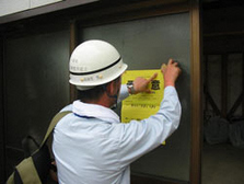 建物の倒壊の危険性や建物への立入可否を判定する調査です