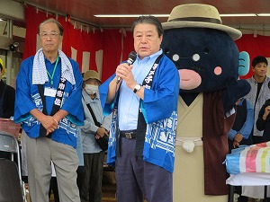 星野市長は、ふるさと祭り開催にご尽力いただいた関係者の皆様に感謝するとともに、今回のお祭りのような地域の行事を通して、子どもたちにはふるさとである我孫子に愛着と誇りを持ってほしいと挨拶しました。