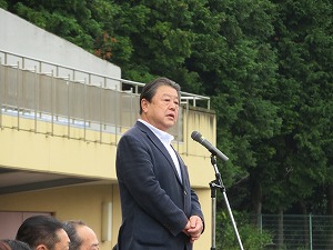 市民スポーツ大会総合開会式で挨拶する星野市長