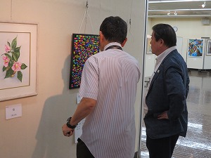 市民プラザで開催された第68回我孫子市民文化祭「絵画展」を訪問しました。星野市長は、油絵や水彩画など展示作品の数々をじっくりと観賞しました。