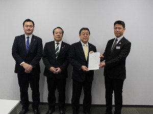 星野市長は、JR千葉支社長へ、成田線の重要性を改めてお伝えし、成田線の増発や駅施設の整備など成田線の利便性向上について要望書を提出しました。