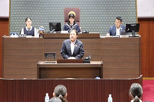 第11回令和7年度子ども議会を開催し、各小中学校から38名(うち1名欠席)の子ども議員が出席しました。出席した子ども議員からは、通学路の安全対策や部活動の地域展開、学習環境の整備、オンライン申請の推進、少子高齢化対策など様々な質問があり、市長、教育長が市の取り組みや今後の展望などについて答弁しました。