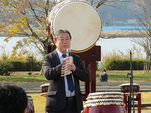手賀沼親水広場で初めて開催された「太鼓秋まつり」に出席しました。