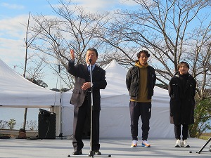 2025手賀沼チームラン・キッズラン「うなきちカップ」に出席し、挨拶しました。