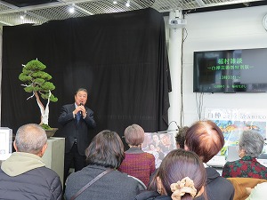 この日は、白樺芸術祭の実行委員長で、志賀直哉の孫である山田裕氏と学芸員がトークショーを行い、星野市長は、トークショーに先立ち挨拶しました。