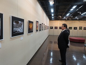 本城直樹写真展「あびこsmall planet」を鑑賞する星野市長