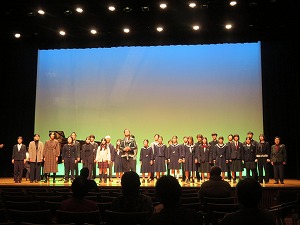 平和の集いは、今年8月に被爆地広島に派遣した中学生15名による発表と、我孫子中学校演劇部による劇「消えた八月」、シンガーソングライターの佐々木祐滋さんによるライブの3部構成で行われました。