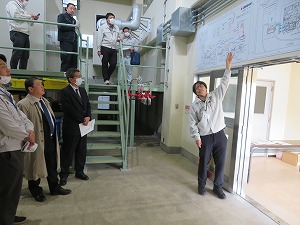 金谷排水機場を視察する星野市長