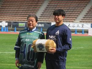 選手に記念品をお渡しする星野市長